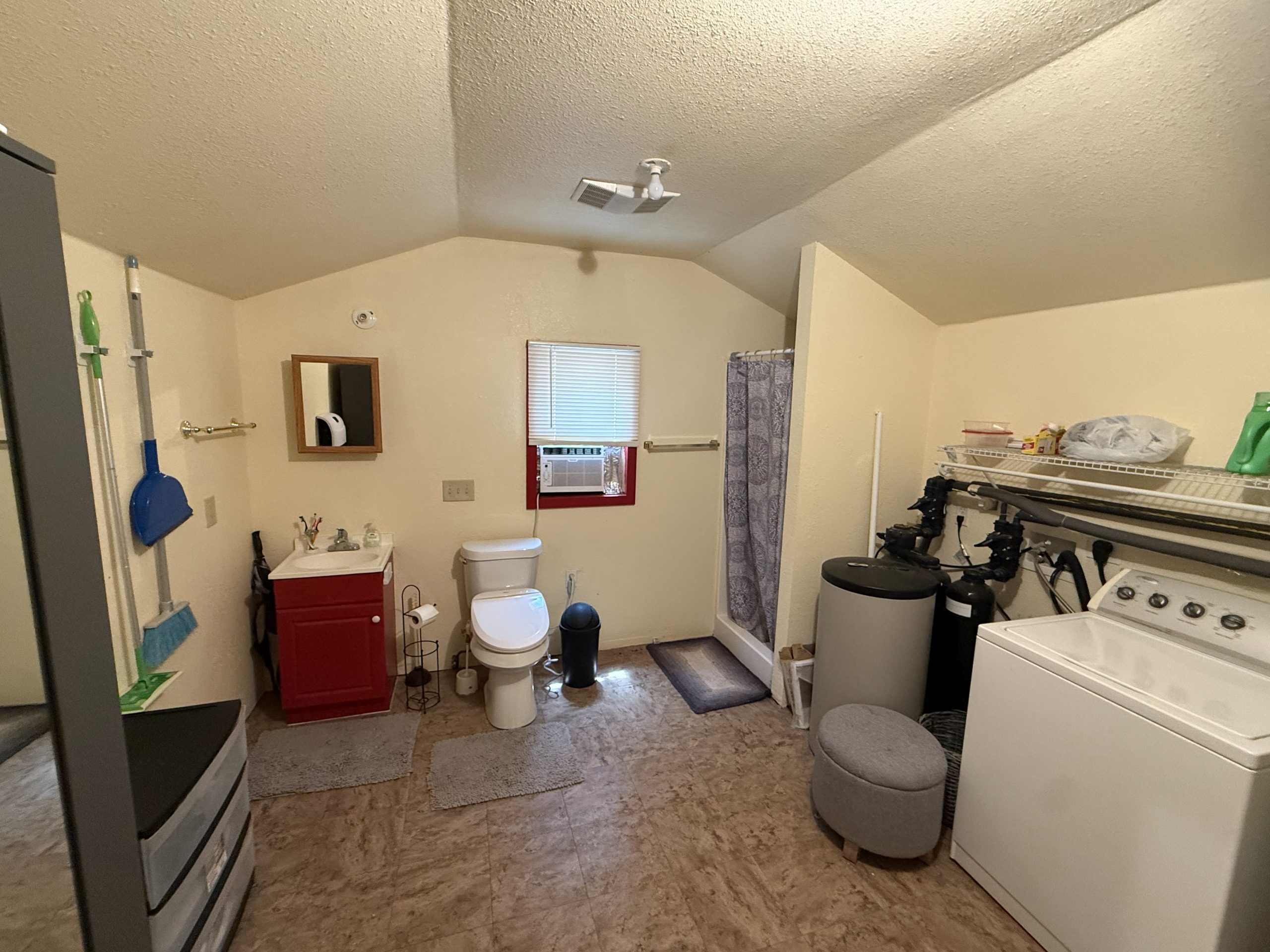 Full bathroom with a heated toilet seat — even outlaws deserve comfort
