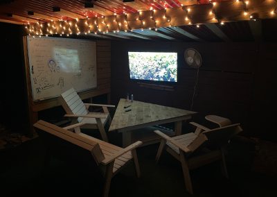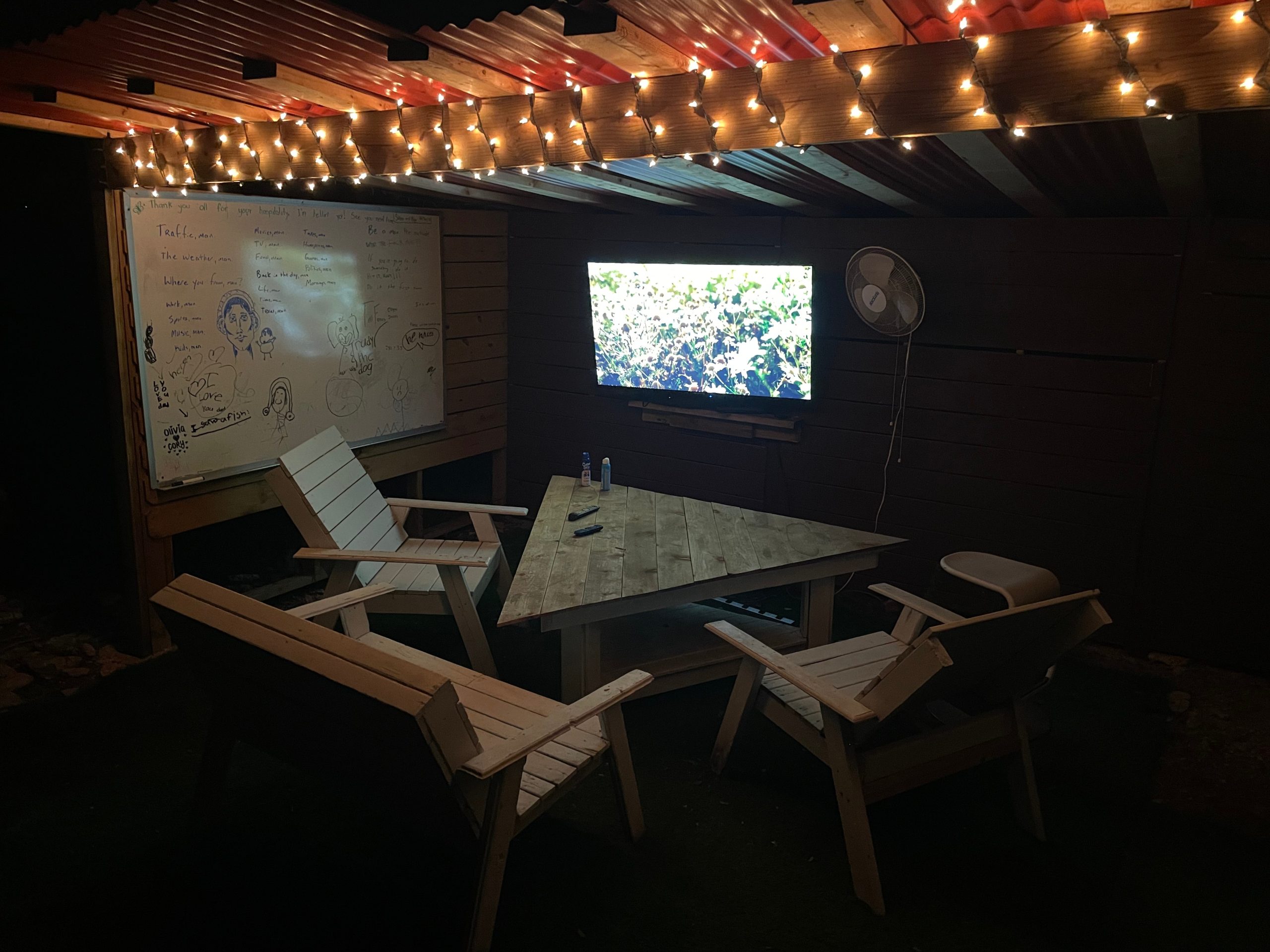 Two TVs indoors, one outdoors